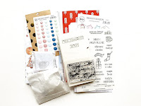 KIT oprócz bazy zawiera również mnóstwo dodatków - zestawy stempli, enamel dotsy, chipboardy, naklejki, dwustronne karty, papiery scrapowe i jednobarwne i... wiele wiele innych!